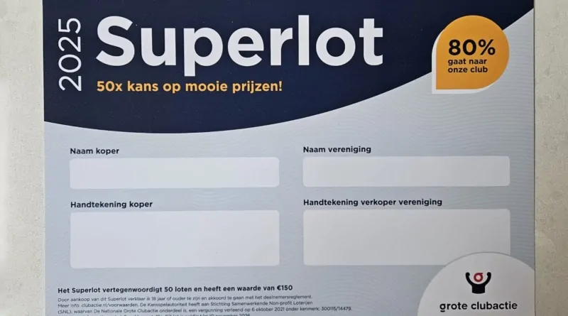 Voor de wat oudere (jeugd)leden is het verkopen van een Superlot misschien een leuke uitdaging. Dan verkoop je in 1 keer 50 loten aan bijvoorbeeld een bedrijf. Een superlot kost €150 en brengt maar liefst €120 op voor de clubkas.